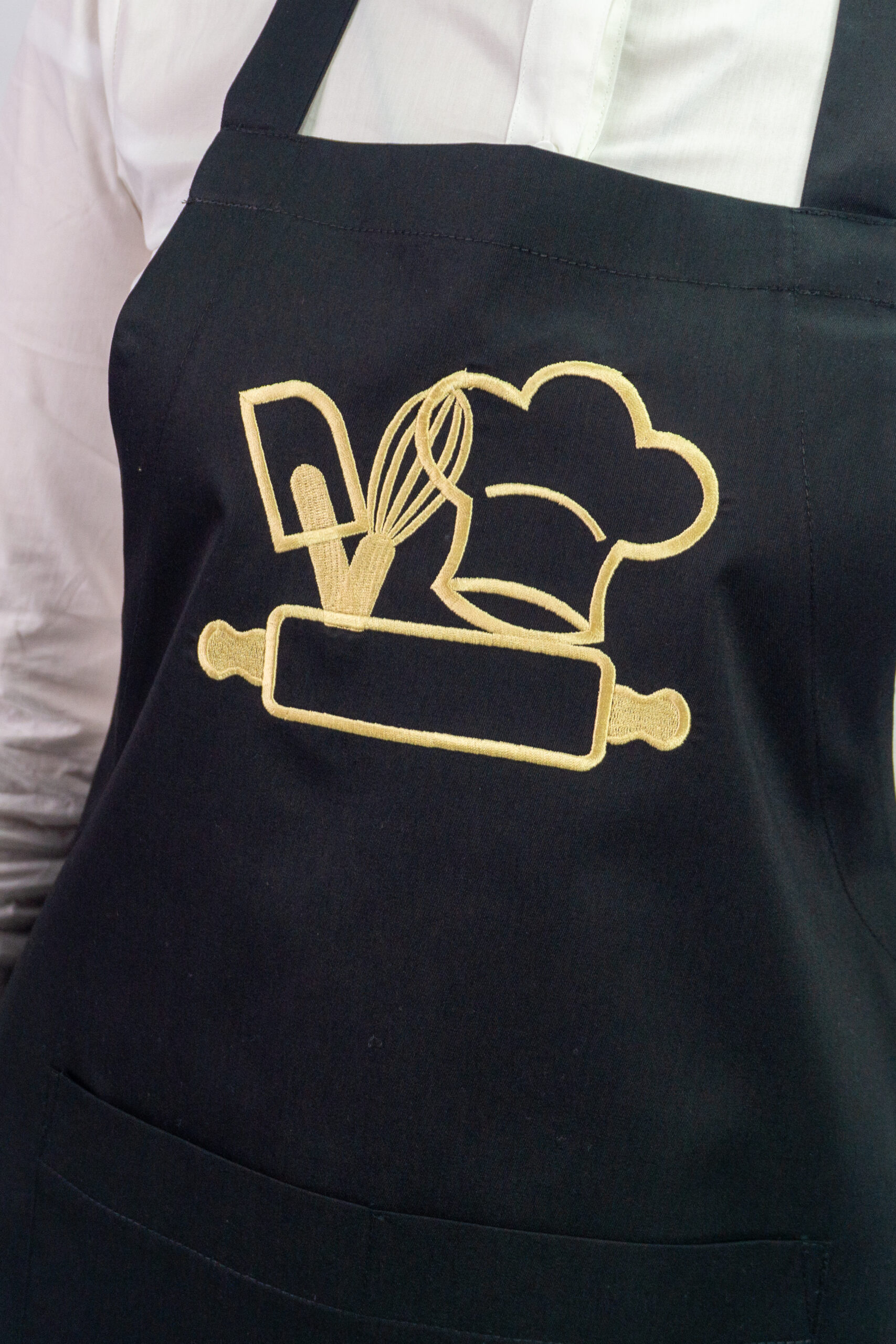 Șorț de bucătărie clasic, realizat din material rezistent, ideal pentru utilizare profesională sau acasă. Decorat cu broderie elegantă cu tematică culinară, oferă un plus de stil și personalitate. Confortabil și practic, asigură protecție eficientă și un aspect impecabil în orice bucătărie.
